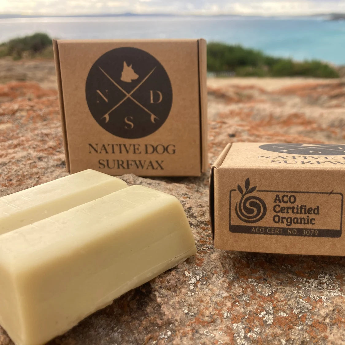 Native Dog Surf Wax is made with all-natural, sustainable ingredients like certified organic beeswax, organic coconut oil, and tree sap. No petroleum-based products here. It's the perfect choice for eco-conscious surfers.